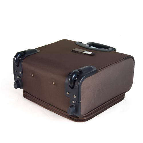 主料采用PU提花尼龍料,手感柔和,有可調(diào) 節(jié)固定帶用于固定衣物等,有加大容量拉鏈 圍。前身設(shè)有兩層隱藏式拉鏈袋,可放置一 些常用物品,方便拿取,袋頂部有一個(gè)手把, 用鉚釘固定,穩(wěn)固性強(qiáng),采用靜音萬(wàn)向輪子, 避震能力極強(qiáng),減輕與地面的摩擦,讓你拉動(dòng)輕松自如。